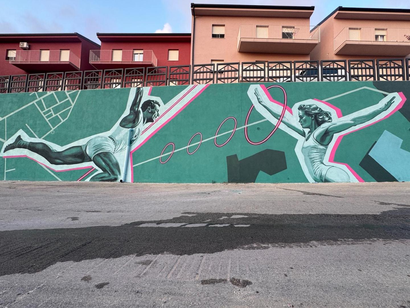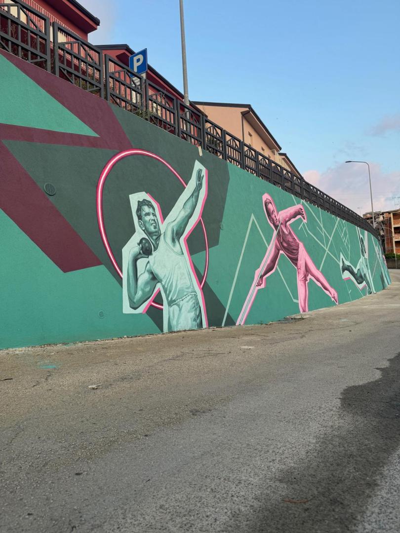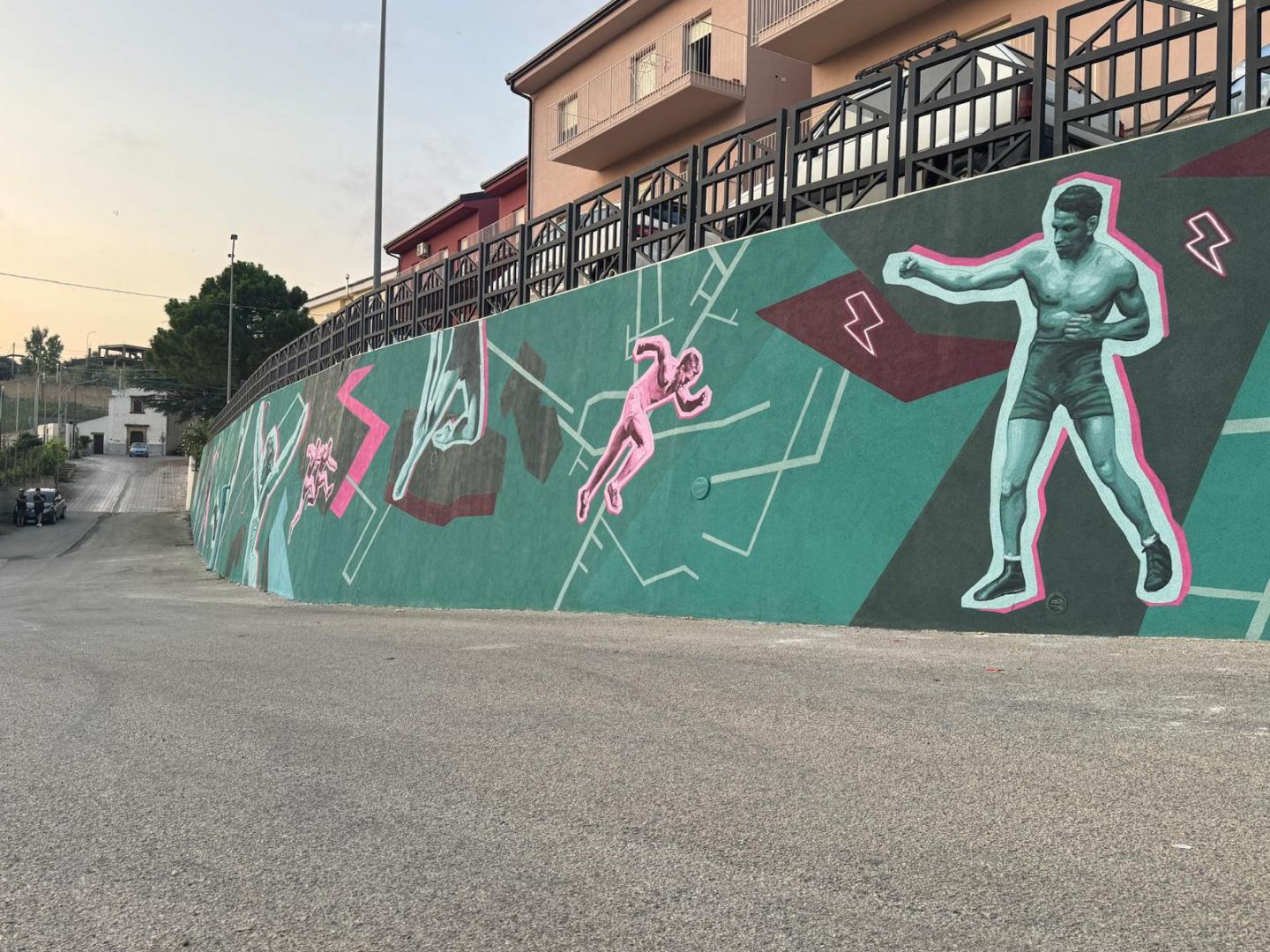 L’opera, intitolata Flusso dinamico, porta la firma del noto artista palermitano Andrea Buglisi, da anni punto di riferimento nel panorama nazionale della street art. Il murale, situato in via Credenza, colpisce per forza espressiva e significato, affrontando un tema centrale per la crescita delle comunità: lo sport come strumento di inclusione.