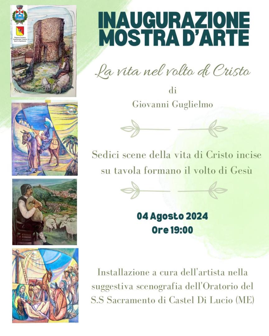 Dal 4 all'11 agosto, presso l'Oratorio del SS. Sacramento, si terrà una mostra d'arte dal titolo La vita nel volto di Cristo. L'autore Giovanni Guglielmo esporrà sedici scene della vita di Cristo incise su tavola che, in una suggestiva performance prevista nei gg. 4,9 e 11, andranno a comporre il volto di Cristo.