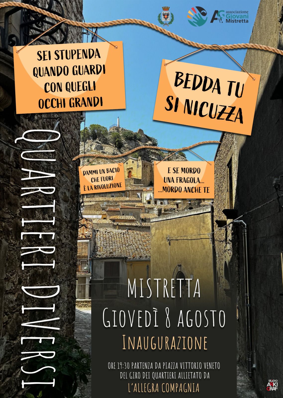 In occasione di Quartieri diVersi saranno installati diversi pannelli riportanti frasi tratte da canzoni famose del repertorio italiano e siciliano che, una volta terminata la manifestazione, saranno consegnati al patrimonio pubblico e caratterizzerano nel tempo il citato quartiere, mentre l'Allegra compagnia allieterà il pubblico con i suoi indimenticati e indimenticabili brani tratti soprattutto dalla tradizione popolare siciliana in un mini-tour tra le vie cittadine, evento estivo attesissimo dai residenti e non.